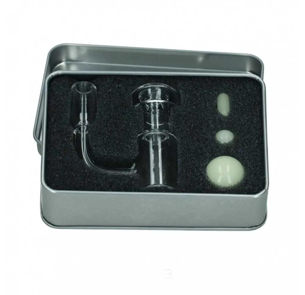 W komplecie z bangerem znajdują się dodatkowe akcesoria, takie jak kulki i perły wspomagające cyrkulację powietrza. Elementy te zwiększają wydajność inhalacji, dbając o równomierne rozprowadzanie ciepła i lepsze wykorzystanie materiału. Całość zapakowana jest w estetyczne, metalowe pudełko, które chroni zestaw przed uszkodzeniami i ułatwia przechowywanie.