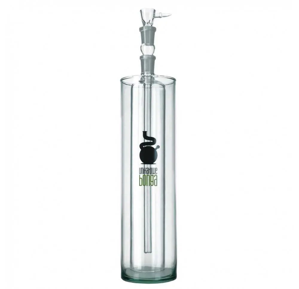 Szklane bongo - wiadro. Zestaw składa się ze szklanego wiadra, szklanej butli, cybucha, ustnika i silikonowej podkładki. Dzięki dołączonej rurce dym filtruję się w dzbanie podczas jego napełniania.