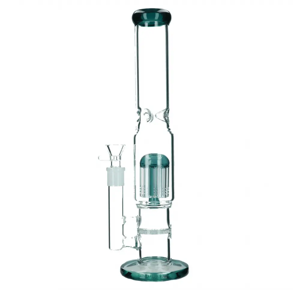 Bongo Szklane Deleter o wysokości 38 cm i grubości szkła 5 mm to imponujące akcesorium, które zapewnia najwyższą wydajność w filtracji i chłodzeniu dymu. Dzięki swojej solidnej konstrukcji i dużemu rozmiarowi, bongo oferuje wyjątkowo gładkie i czyste zaciągnięcia, co sprawia, że każda sesja palenia staje się wyjątkowym doświadczeniem. To bongo idealnie nadaje się dla miłośników intensywnych doznań, którzy cenią sobie zarówno jakość, jak i estetykę swoich akcesoriów.