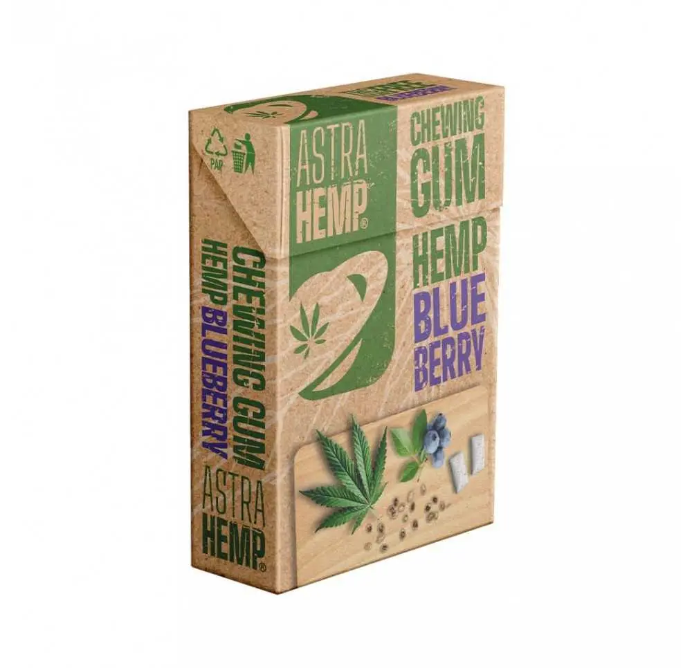 Guma do żucia Astra zawiera: substancje słodzące (sorbitol, syrop izomaltowo-maltitolowy, acesulfam K, sukraloza), bazę gumową, aromaty, regulator kwasowości (kwas cytrynowy), substancję utrzymującą wilgoć (glicerol), skrobię ryżową, zagęszczacz (guma arabska), olej z nasion konopi siewnych (0,21%), barwnik E133, substancję glazurującą (wosk Carnauba), przeciwutleniacz (E306). Produkt nie zawiera cukru i jest odpowiedni do spożycia także przez osoby redukujące jego obecność w diecie.