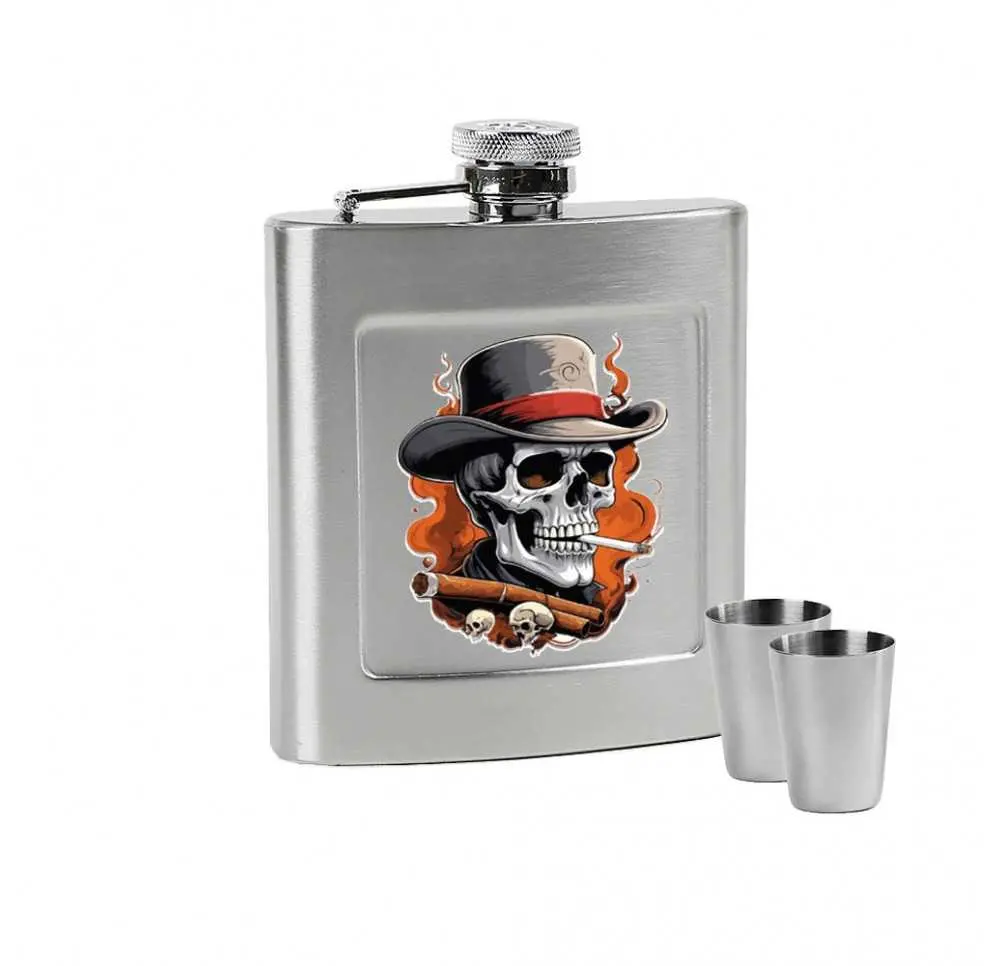 Prezentowy zestaw z piersiówką z motywem czaszki to wybór dla tych, którzy cenią oryginalność i mocny przekaz. W komplecie znajduje się piersiówka ze stali nierdzewnej o pojemności 240 ml oraz dwa kieliszki – wszystko elegancko zapakowane w pudełko sygnowane marką Dan Barmore.
