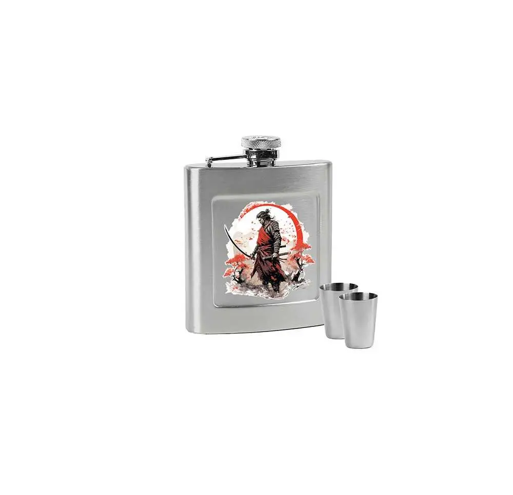 Zestaw z piersiówką Dan Barmore SAMURAJ to połączenie estetyki, historii i siły. Piersiówka o pojemności 240 ml z motywem samuraja na tle czerwonego słońca i japońskich drzew wiśni przyciąga wzrok i niesie głębokie przesłanie. Do kompletu dołączone dwa kieliszki – wszystko zapakowane w eleganckie pudełko.