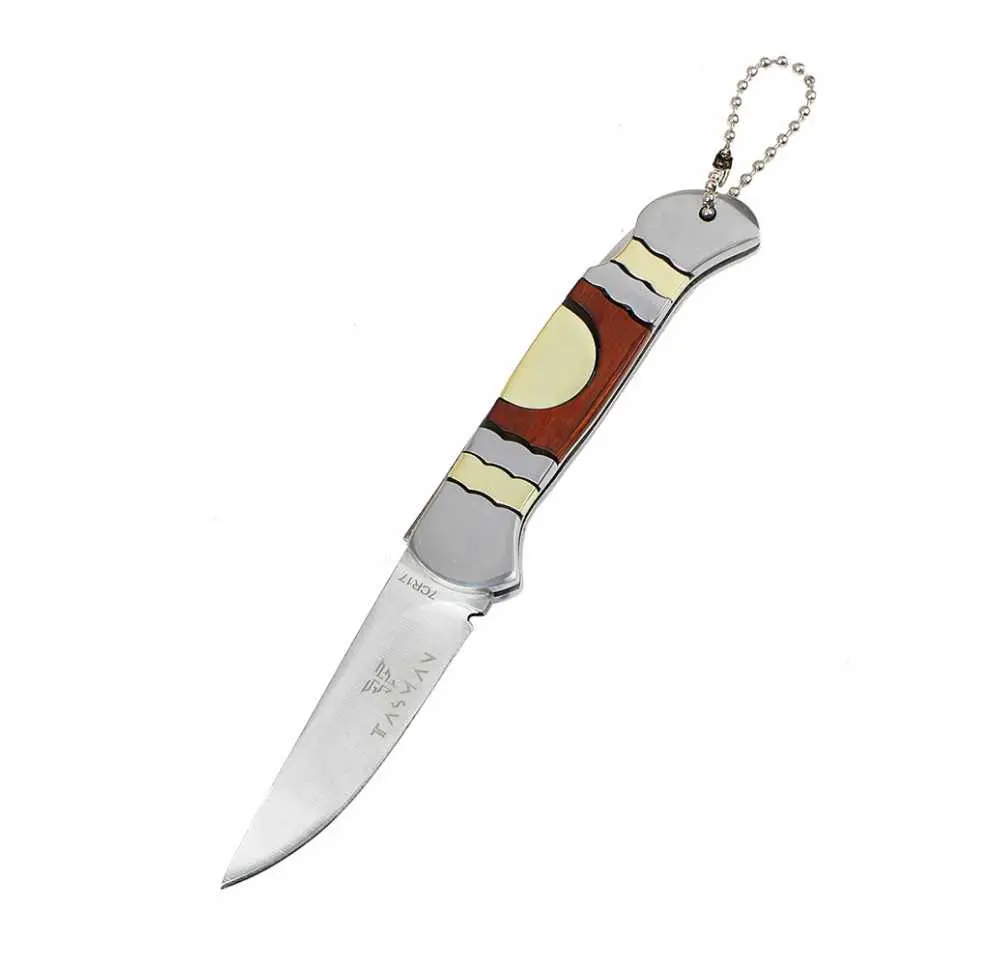 Składany nóż kieszonkowy z estetyczną rękojeścią i łańcuszkiem
