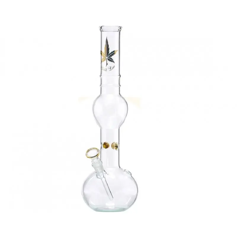 Model GOLD LINE został zaprojektowany z dbałością o wygodę użytkowania i efektywność filtracji. Sferyczna podstawa umożliwia odpowiednie napełnienie wodą, a profilowana szyjka z dwoma zwężeniami poprawia cyrkulację i chłodzenie dymu. Standardowy szlif 14,5 mm sprawia, że bongo jest kompatybilne z szerokim wyborem cybuchów i dodatków.