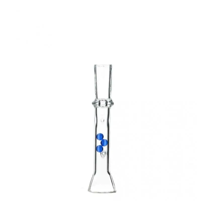 Lufki szklane z serii BALLS wykonane zostały z grubego, boro-krzemowego szkła odpornego na wysokie temperatury. Pojemny, sześciokątny cybuch o średnicy 1 cm pomieści dużo suszu, a spłaszczony ustnik podnosi komfort dłuższej inhalacji. Zamknięte w środku 3 niebieskie kuleczki nie tylko zapobiegają przedostawaniu się resztek suszu i popiołu przez lufę, ale rozbijają dym, obniżając jego temperaturę. Szklany pierścień na zewnątrz pozwala tak odłożyć lufę, żeby cybuch i palona mieszanka nie dotykała brudnych powierzchni.