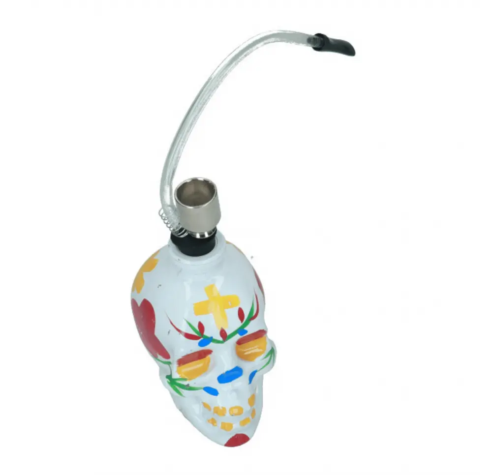 Fajka wodna Skull łączy w sobie funkcjonalność i wyjątkowy styl. Jej kształt inspirowany jest czaszką, ozdobioną barwnymi wzorami przypominającymi motywy znane z kultury „Day of the Dead”. Każdy egzemplarz ma niepowtarzalny wygląd, który wyróżnia go spośród klasycznych fajek wodnych.