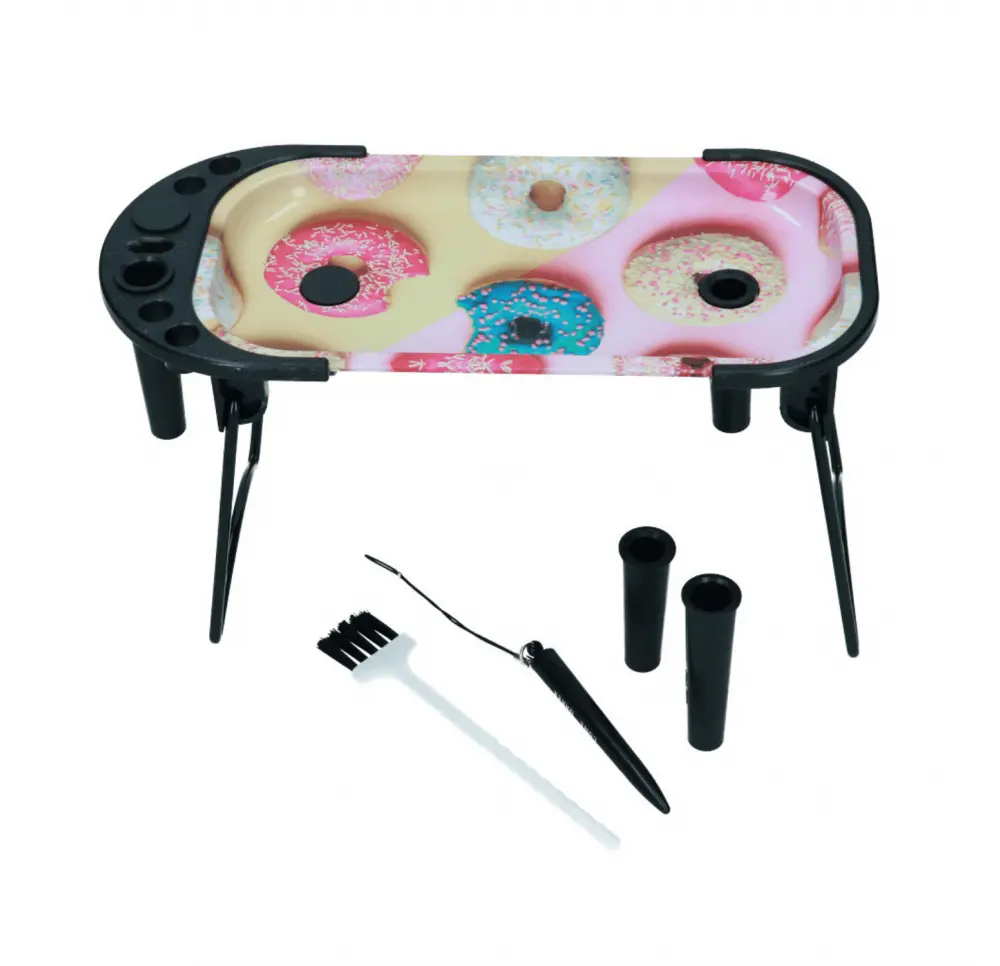 Konsola z metalową tacką to funkcjonalne i estetyczne akcesorium, które doskonale sprawdza się w codziennym użytkowaniu. Wykonana z trwałych materiałów, łączy solidny metal z lekkimi elementami plastikowymi, co zapewnia stabilność i wygodę podczas korzystania. Dzięki składanym nóżkom można ją łatwo ustawić na dowolnej powierzchni lub złożyć i schować, gdy nie jest potrzebna.