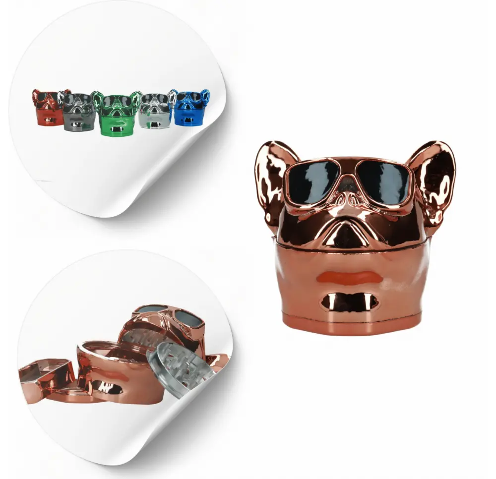 Młynek metalowo-akrylowy Doggy 4 części 75 mm to akcesorium, które od razu przyciąga wzrok. Wykonany w formie psiej głowy w charakterystycznych okularach przeciwsłonecznych, łączy w sobie funkcjonalność z nietuzinkowym wyglądem. To gadżet, który z powodzeniem sprawdzi się zarówno w codziennym użytkowaniu, jak i jako element kolekcji dla miłośników oryginalnych akcesoriów. Dzięki połączeniu trwałego metalu i lekkiego akrylu zyskujesz solidny grinder odporny na uszkodzenia i wygodny w użyciu, który wyróżnia się na tle tradycyjnych modeli.