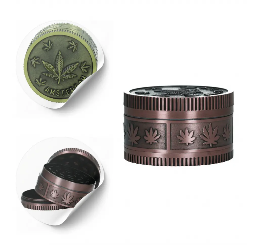 Młynek metalowy Amsterdam 3 części 52 mm to połączenie funkcjonalności i charakterystycznego designu, który od razu kojarzy się z kulturą palaczy. Grawerowane motywy liści oraz napis „Amsterdam” sprawiają, że akcesorium zyskuje wyjątkowy charakter, a jego solidne wykonanie czyni go niezawodnym w codziennym użytkowaniu. To wybór zarówno dla osób, które cenią klasykę, jak i dla tych, którzy szukają wytrzymałego młynka o uniwersalnym rozmiarze.
