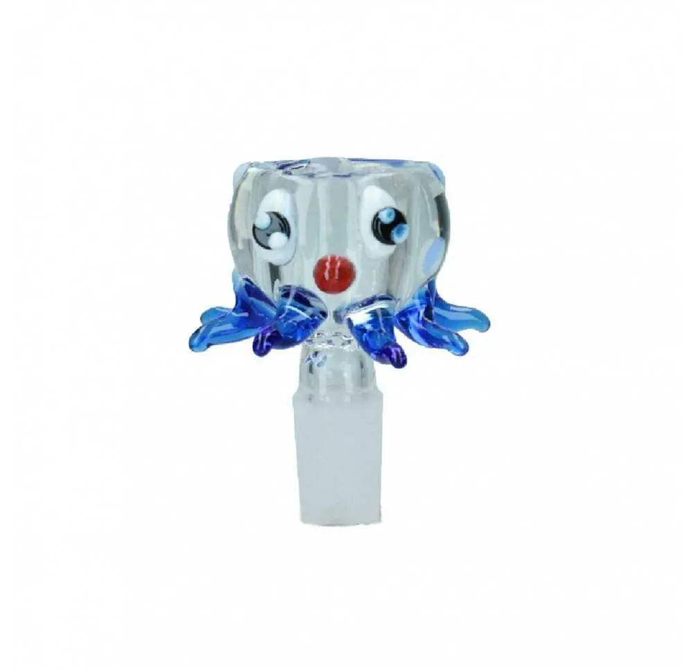 Cybuch szklany Octopus to wyjątkowy element, który od razu przyciąga wzrok. Został zaprojektowany tak, by przypominał sympatyczną ośmiornicę – z dużymi oczami, czerwonym nosem i charakterystycznymi niebieskimi mackami. To nie tylko funkcjonalne akcesorium, ale również zabawna ozdoba Twojego bonga.