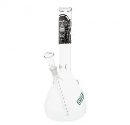 Wysokość 30 cm to optymalne rozwiązanie dla osób, które szukają wygodnego bonga do użytku domowego. Model GREENLINE MUSIC MONKEY posiada klasyczny korpus typu beaker, który zapewnia większą objętość wody i stabilność na każdej powierzchni. Ukośnie ustawiona rurka z cybuchem umożliwia równomierne spalanie i łatwe zaciąganie się. Złącze 10 mm jest kompatybilne z wieloma drobnymi akcesoriami, co sprawia, że bongo jest lekkie i poręczne. Obecność otworu kick-hole pozwala na pełniejszą kontrolę nad intensywnością wdechu.