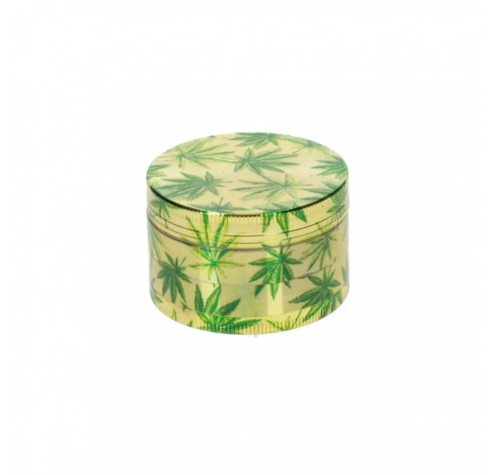 Motyw zielonych liści na złotym tle sprawia, że ten grinder wyróżnia się spośród standardowych modeli. Idealnie sprawdzi się zarówno jako praktyczne narzędzie, jak i gustowny dodatek dla kolekcjonerów akcesoriów. Dzięki kompaktowym wymiarom (średnica 5 cm) bez problemu zmieści się w kieszeni, plecaku lub etui.