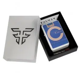 Zapalniczka Tasman „Papierosy Caro” to wyjątkowy model inspirowany kultowym wzorem opakowania popularnych papierosów sprzed lat. Niebiesko-złota grafika z charakterystyczną literą „C” i napisem Caro przywołuje wspomnienia dawnych czasów, czyniąc z tej zapalniczki idealny gadżet dla kolekcjonerów oraz miłośników retro designu.