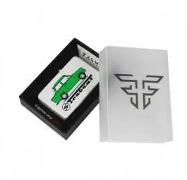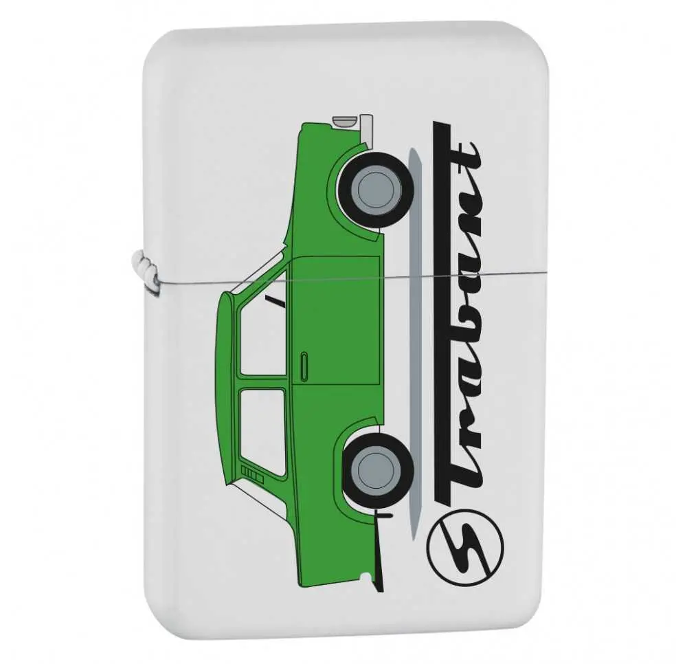 Minimalistyczna grafika przedstawiająca kultowego Trabanta w charakterystycznym zielonym kolorze nadaje zapalniczce oryginalnego i nostalgicznego wyglądu. Biały, matowy korpus tworzy estetyczny kontrast z motywem pojazdu, a napis Trabant w klasycznym kroju pisma przywołuje wspomnienia dawnych podróży i czasów, gdy ten model był królem wschodnich dróg.