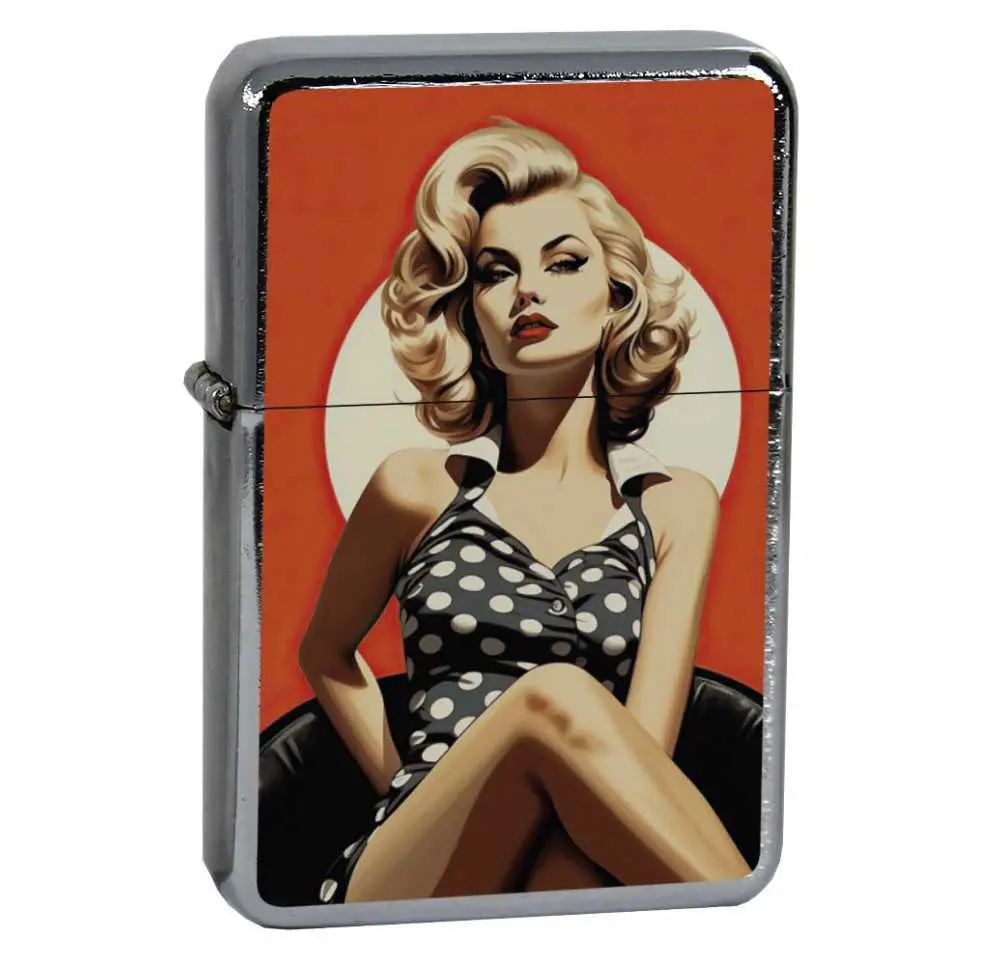 Zapalniczka Tasman „Sexy Lady” to klasyka w stylu vintage, która łączy elegancję z odrobiną buntowniczego charakteru. Na jej obudowie widnieje stylizowana grafika kobiety w duchu pin-up, siedzącej z pewnością siebie i uśmiechem, który mówi więcej niż słowa. To zapalniczka, która nie tylko rozpala ogień, ale też rozbudza wspomnienia epoki stylu, wolności i rock’n’rolla.