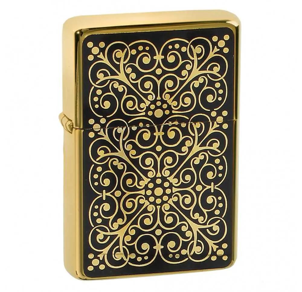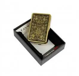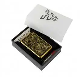 Zapalniczka Tasman „Floral” to wyjątkowe połączenie klasy, stylu i kunsztu wykonania. Jej front zdobi symetryczny, kwiatowy ornament w kolorze złotym, który subtelnie kontrastuje z głęboką czernią tła. Efekt? Idealna harmonia pomiędzy elegancją a artystycznym detalem.